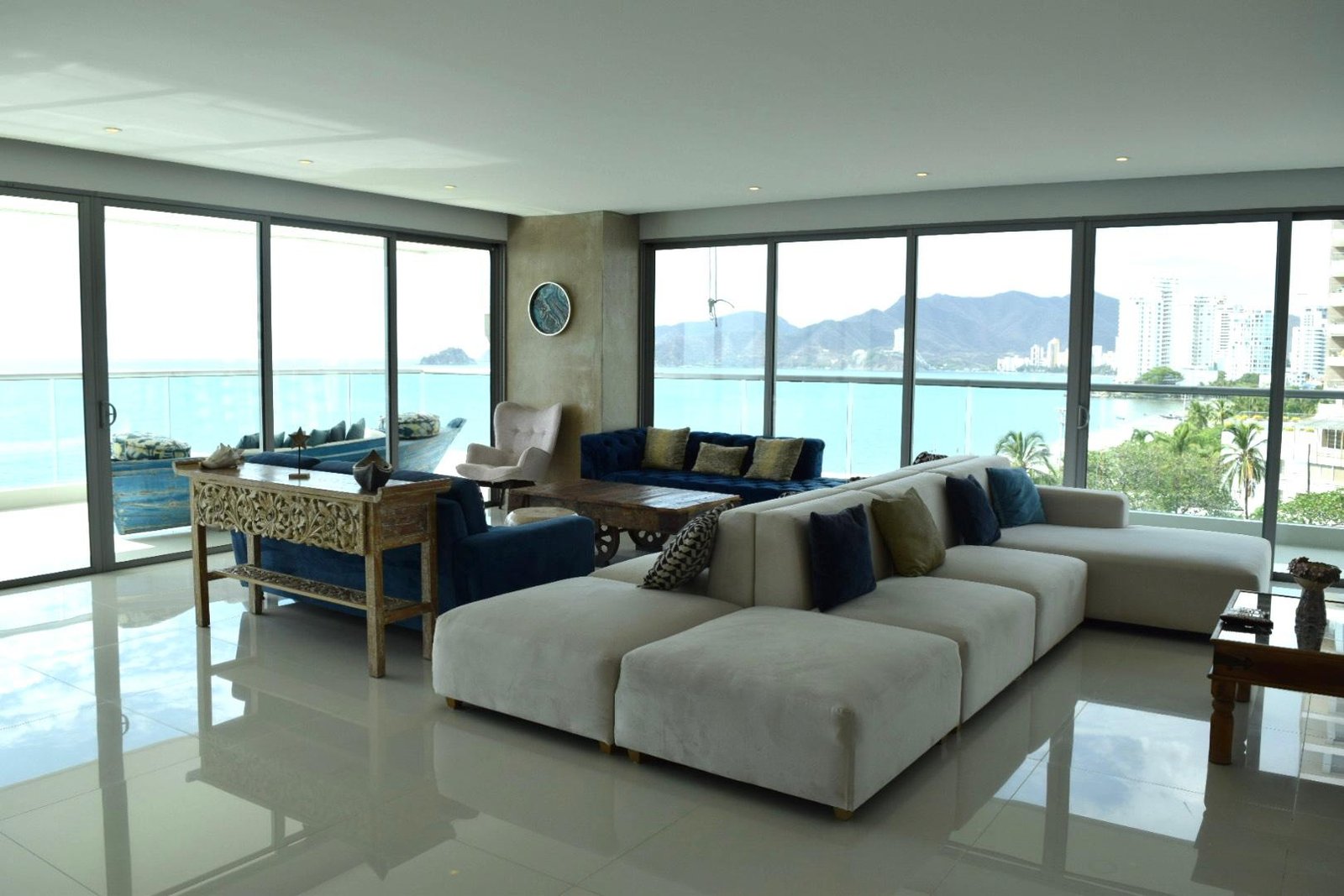 🌅 Vista panorámica al mar desde todas las áreas sociales